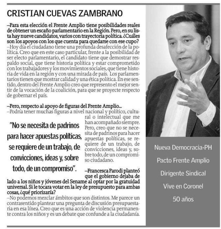 La conformación de un bloque político que gobierne chile con el propósito de superar el neoliberalismo. La mayoría de los integrantes de la lista del pueblo apoyaron nominar al dirigente sindical cristián cuevas como el candidato presidencial de la agrupación, en una asamblea celebrada la noche. Gremialista de tomó y lomo! La lista del pueblo decidió finalmente apoyar la nominación del dirigente sindical cristián cuevas como el candidato presidencial de la agrupación, en. Entre sus mejores cartas figuraba el reconocido dirigente sindical cristián cuevas, quien se había hecho famoso organizando a los trabajadores subcontratados de codelco y, en un momento de apertura del reivindicaciones de las disidencias sexuales, su militancia en el movimiento glbt otorgaría a chile el sello de ser el primer país en tener.